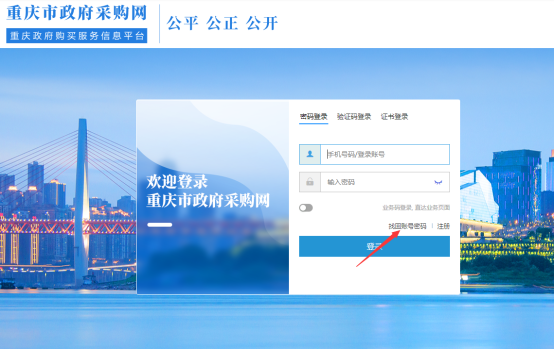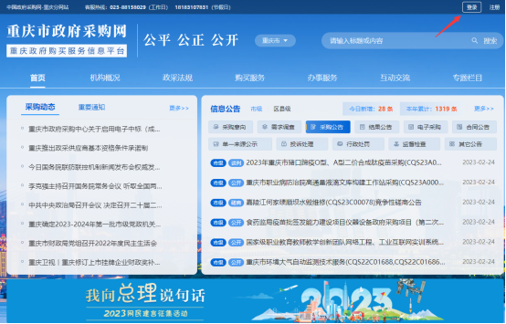 采购单位进入重庆政府采购网首页,使用单位账号密码登录进入重庆政府采购网后台“重庆政府采购交易管理系统”。
