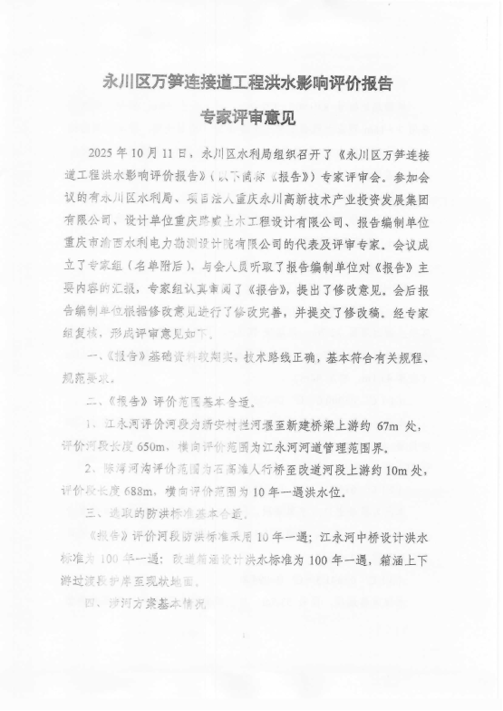 附件:永川区万笋连接道工程洪水影响评价报告专家评审意见