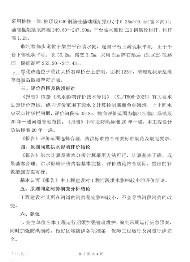 一、项目涉河工程位于永川区临江镇,涉及河道为临江河,同意河段防洪标准为20年一遇。