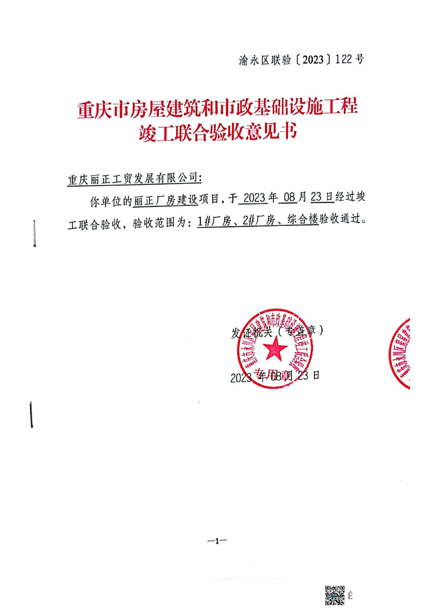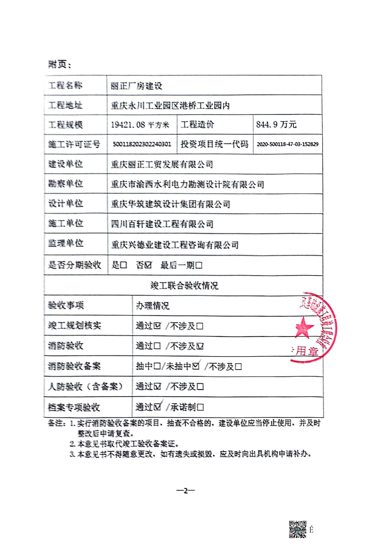丽正厂房建设项目联合验收办理结果
