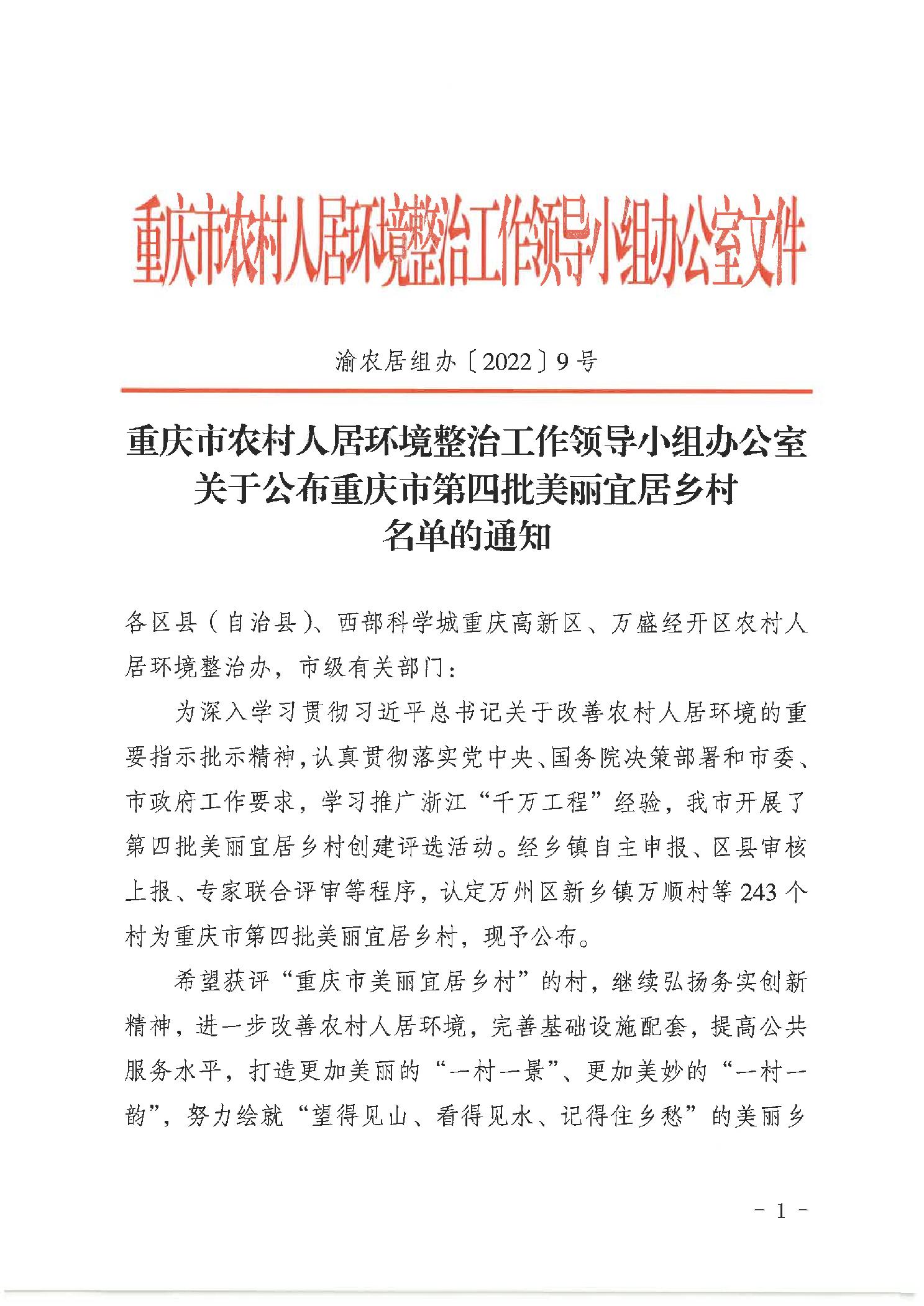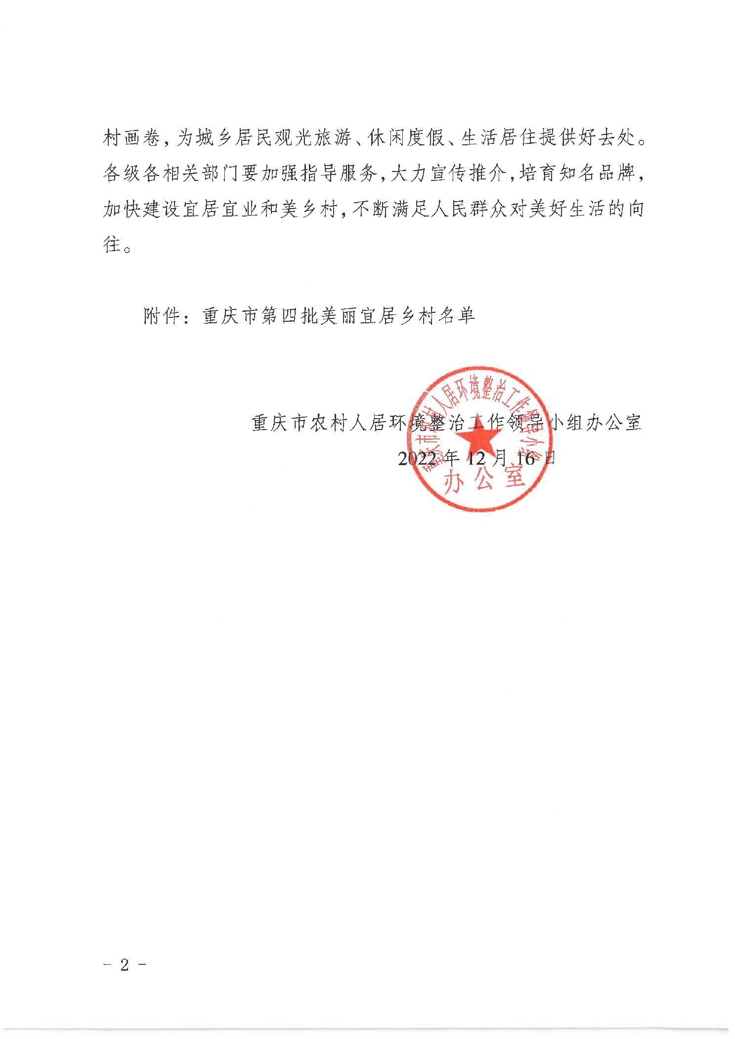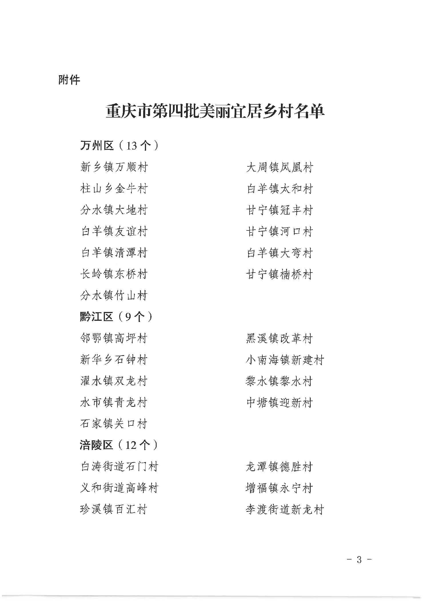 重庆市农村人居环境整治工作领导小组办公室关于公布重庆市第四批美丽宜居乡村名单的通知