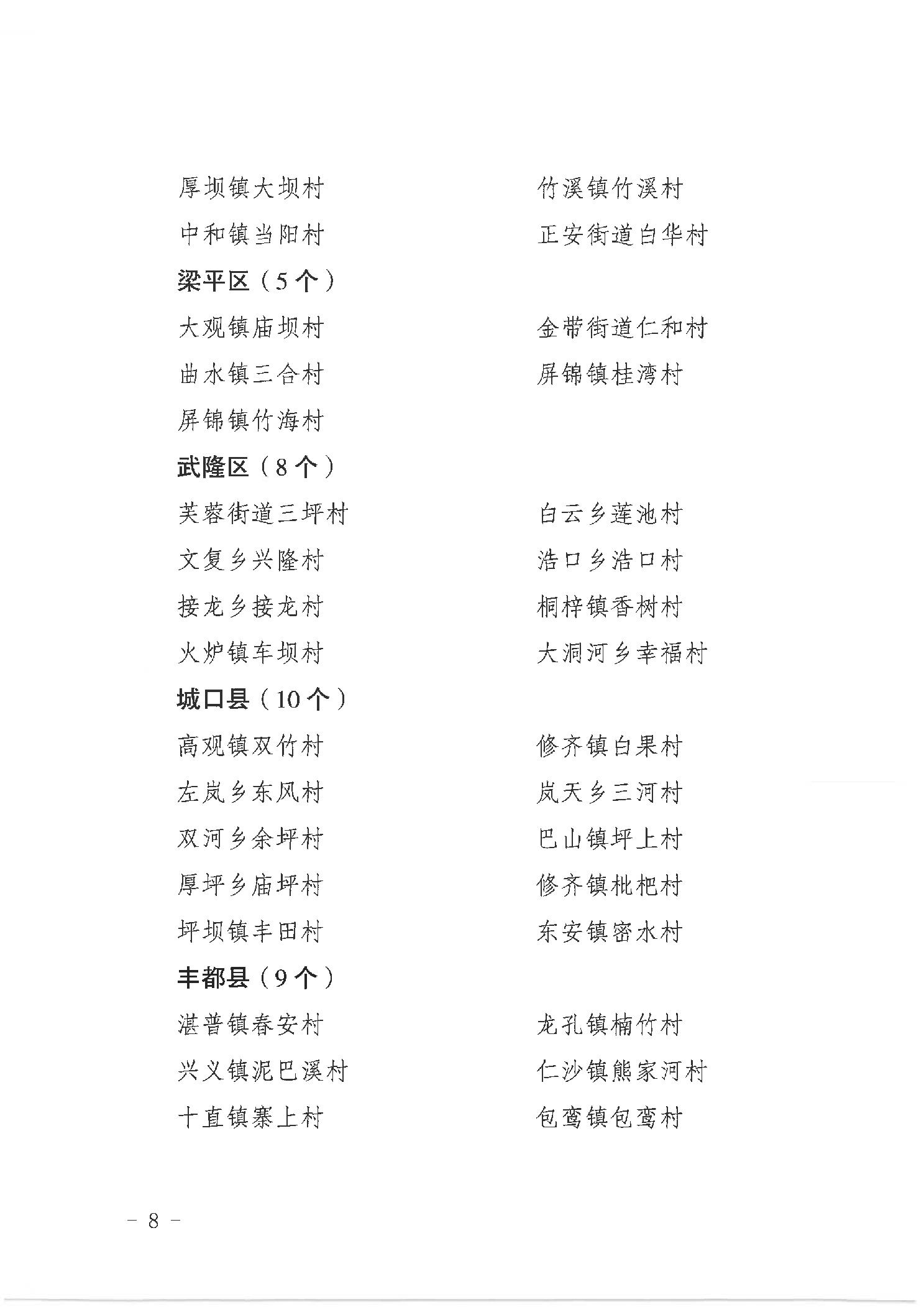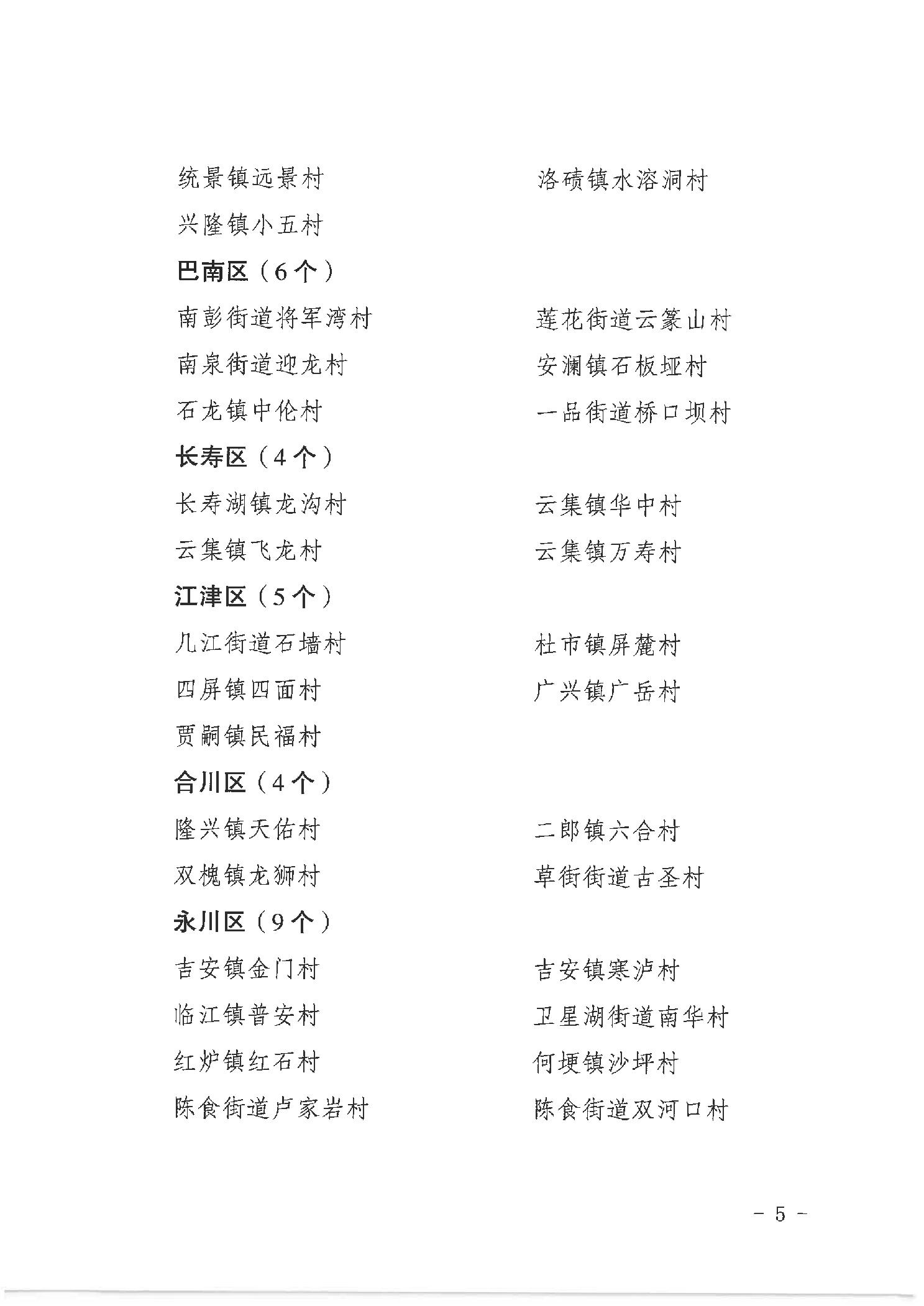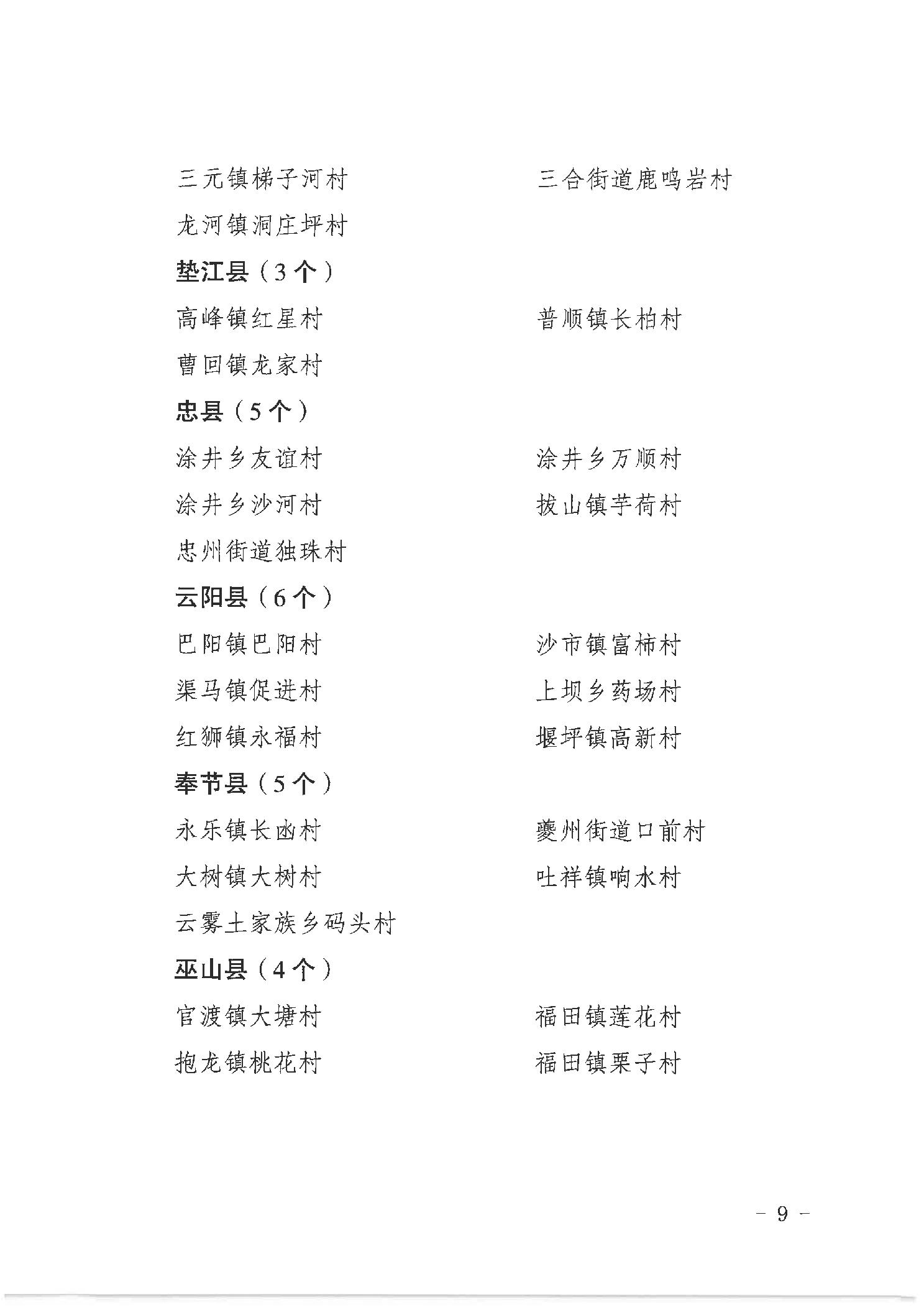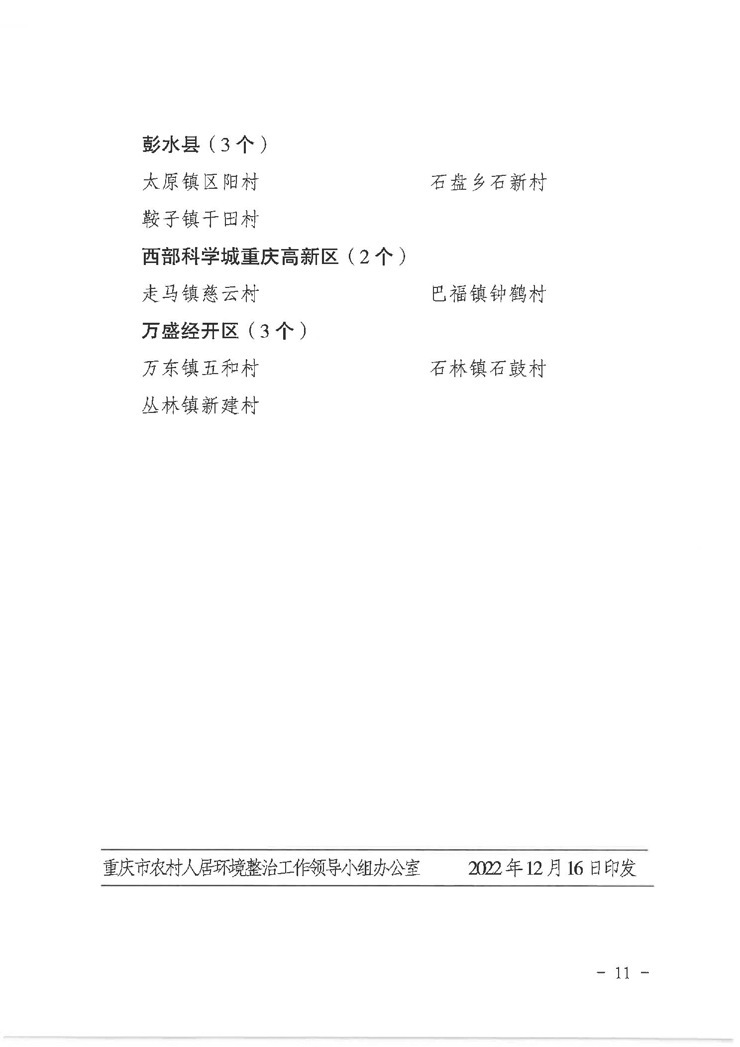 重庆市农村人居环境整治工作领导小组办公室关于公布重庆市第四批美丽宜居乡村名单的通知