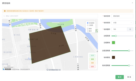 通过航拍图对地块进行详细的分块,以及展示详细的地块信息和传感器数据信息 |
