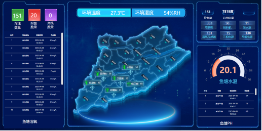 池塘分块,记录每个地块养殖品种和产量,展示传感器数据 |
