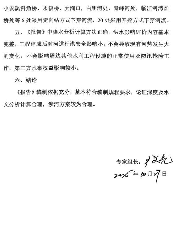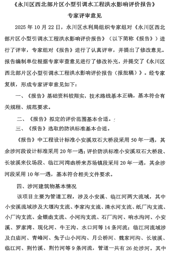 附件:1、永川区西北部片区小型引调水工程洪水影响评价报告专家评审意见