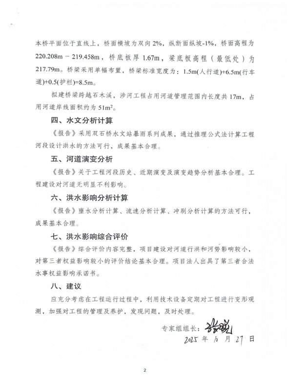 附件:1、永川区朱沱镇2025年荔枝产业园思善危旧桥改建工程项目洪水影响评价报告评审意见;
