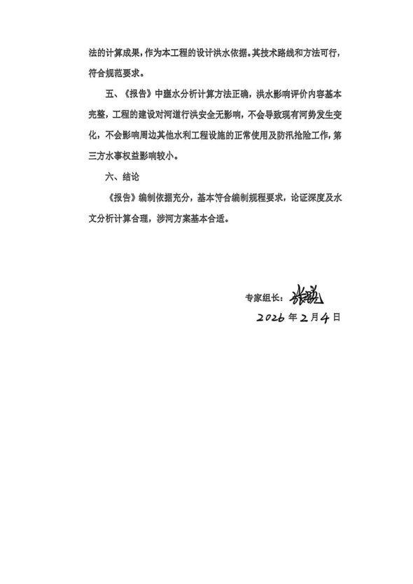 四、原则同意本报告关于工程建设对第三方影响的分析结论。