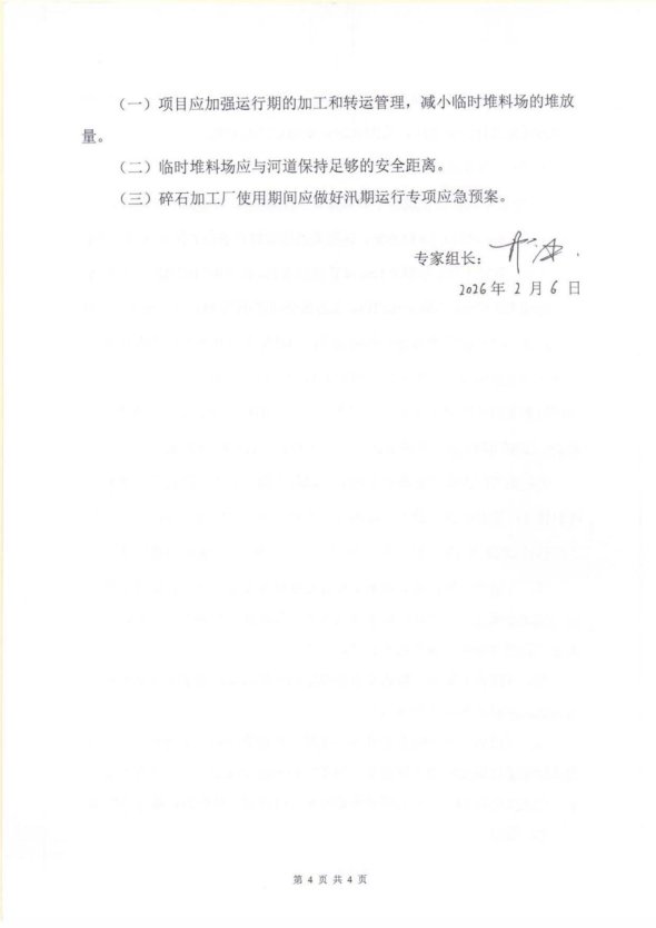 本行政许可决定有效期为1年,自签发之日起计算。根据《报告》碎石加工厂施工期为2026年2月至2026年7月,使用期为2026年7月至2029年10月,有效期满后需要延续依法取得行政许可的有效期,应当在本行政许可决定有效期届满三十日前提出申请。 工程建设过程中涉河建设方案有较大变更的,也应按规定重新办理许可手续。