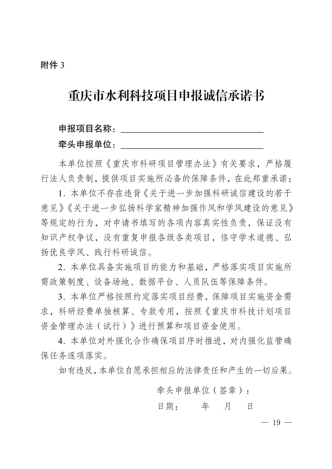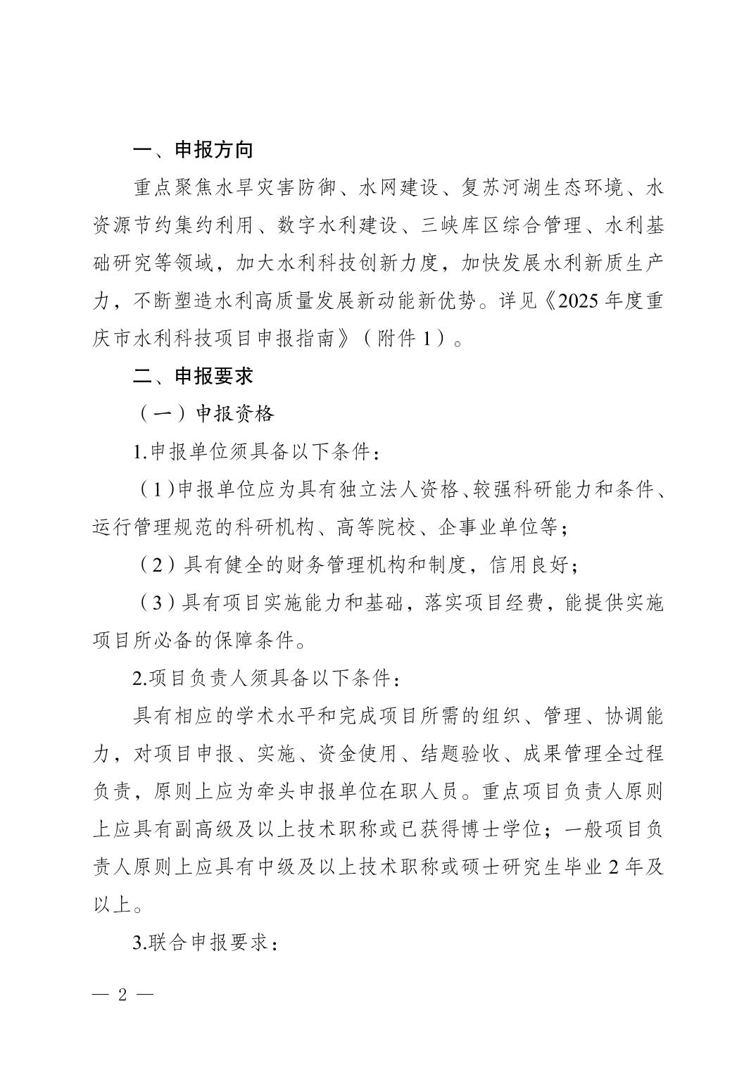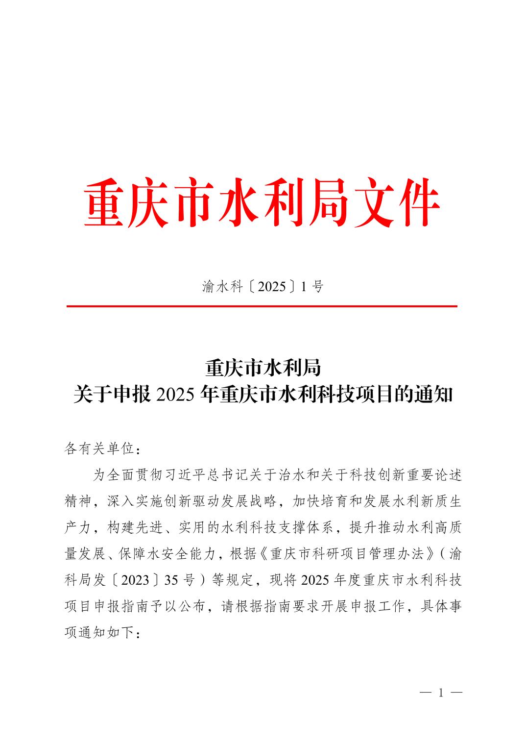 重庆市水利局关于申报2025年重庆市水利科技项目的通知
