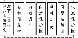 1.定量指标:轻度以下水土流失面积比、森林覆盖率以及集中连片面积。