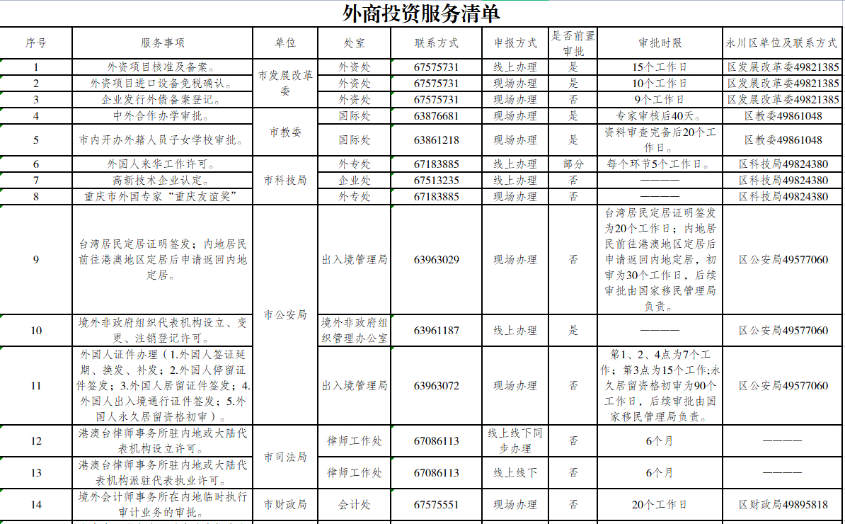 重庆市永川区外商投资行政服务指南