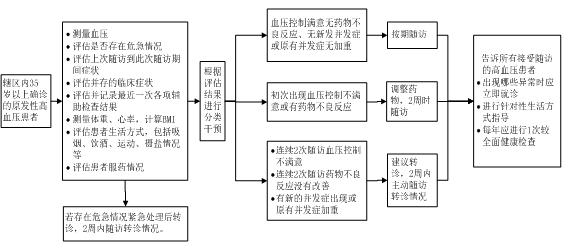 (3)对连续两次出现血压控制不满意或药物不良反应难以控制以及出现新的并发症或原有并发症加重的患者,建议其转诊到上级医院,2周内主动随访转诊情况。