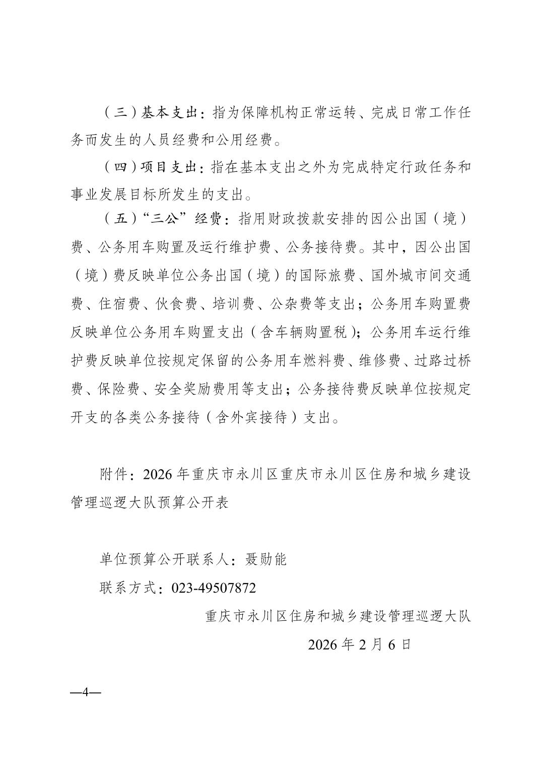 | 标题: | 重庆市永川区住房和城乡建设管理巡逻大队2026年单位预算情况说明 | ||||