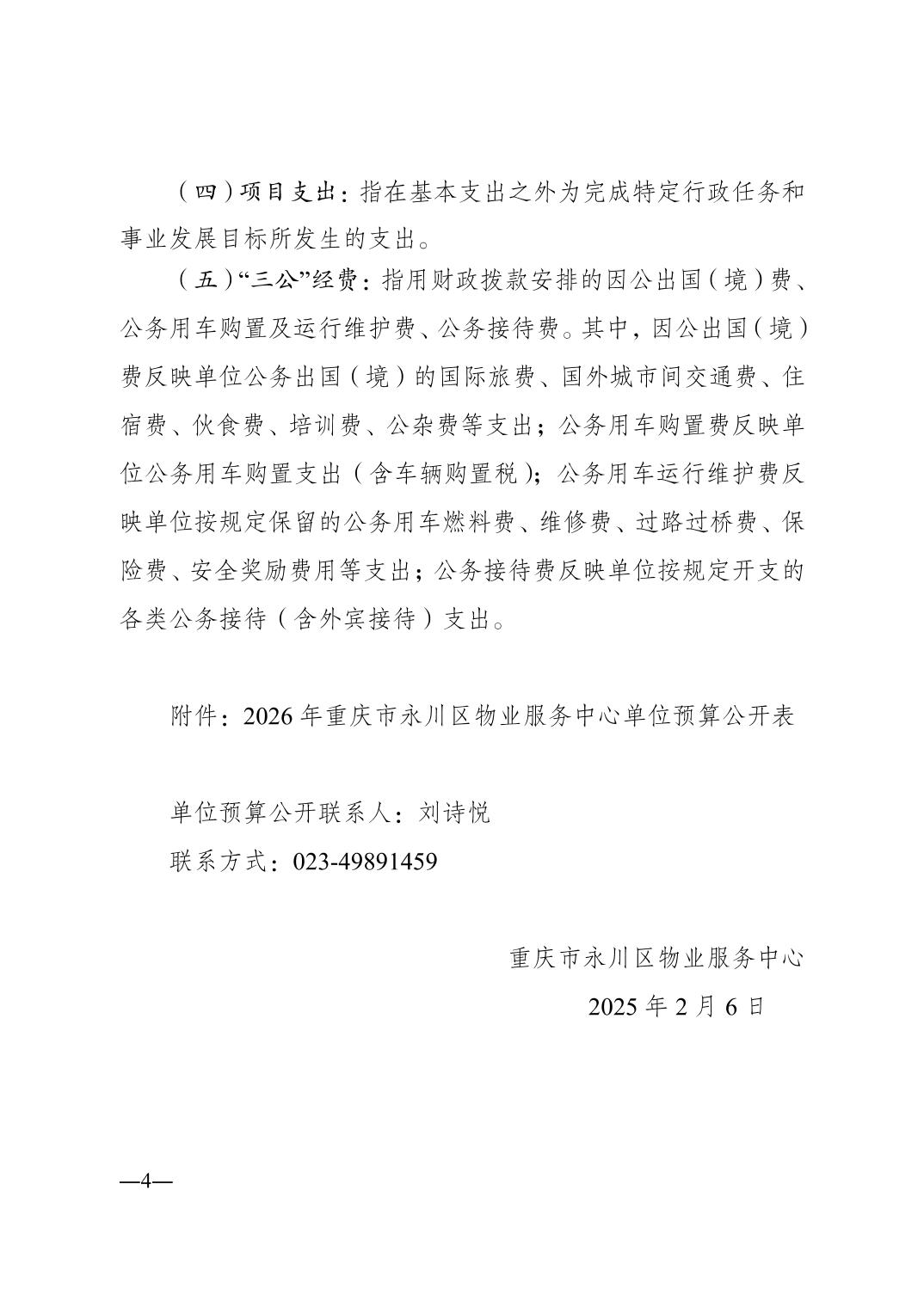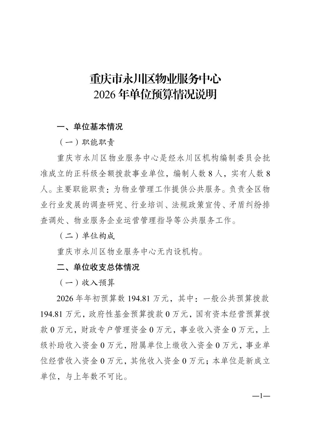 | 标题: | 重庆市永川区物业服务中心2026年单位预算情况说明 | ||||
