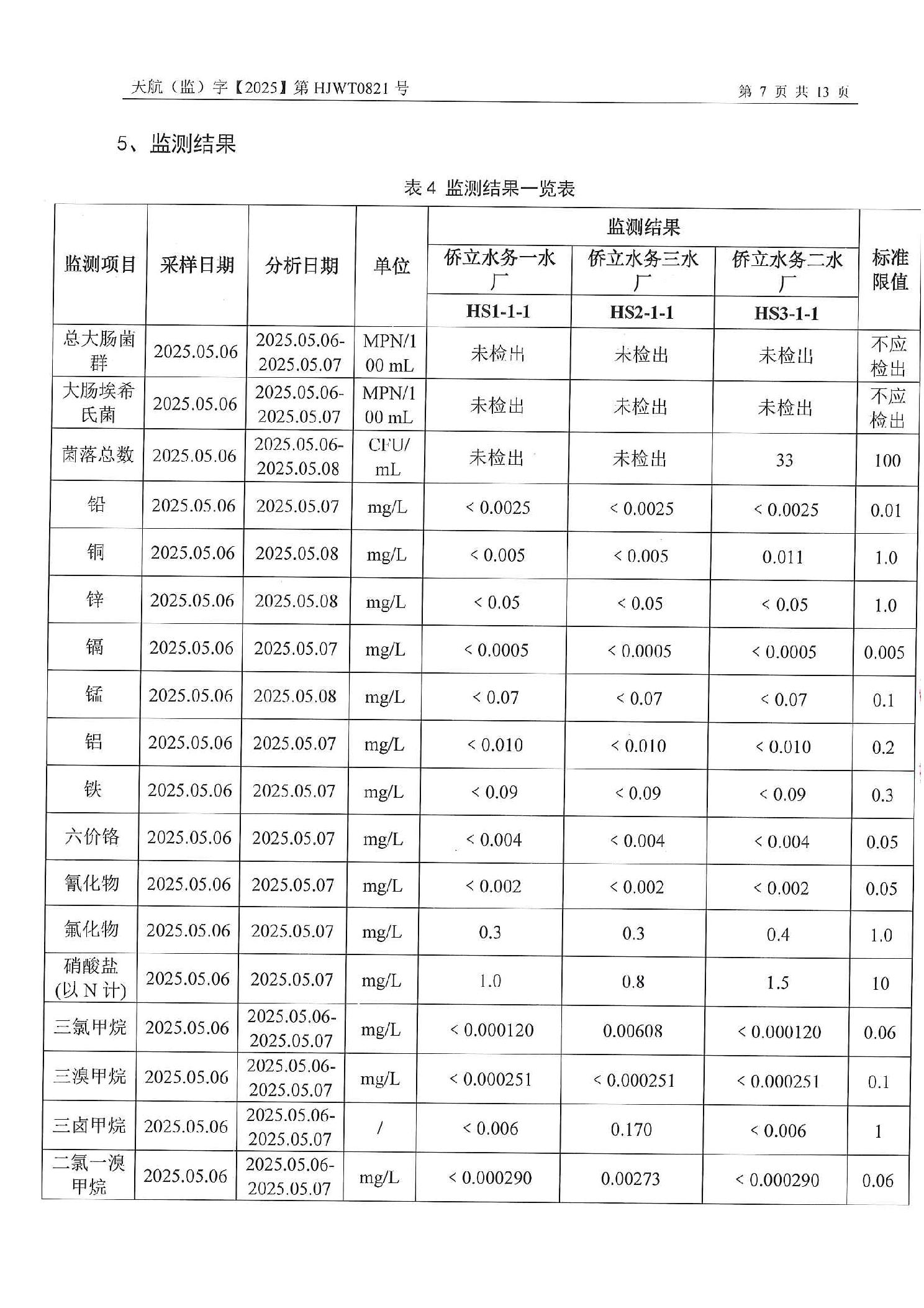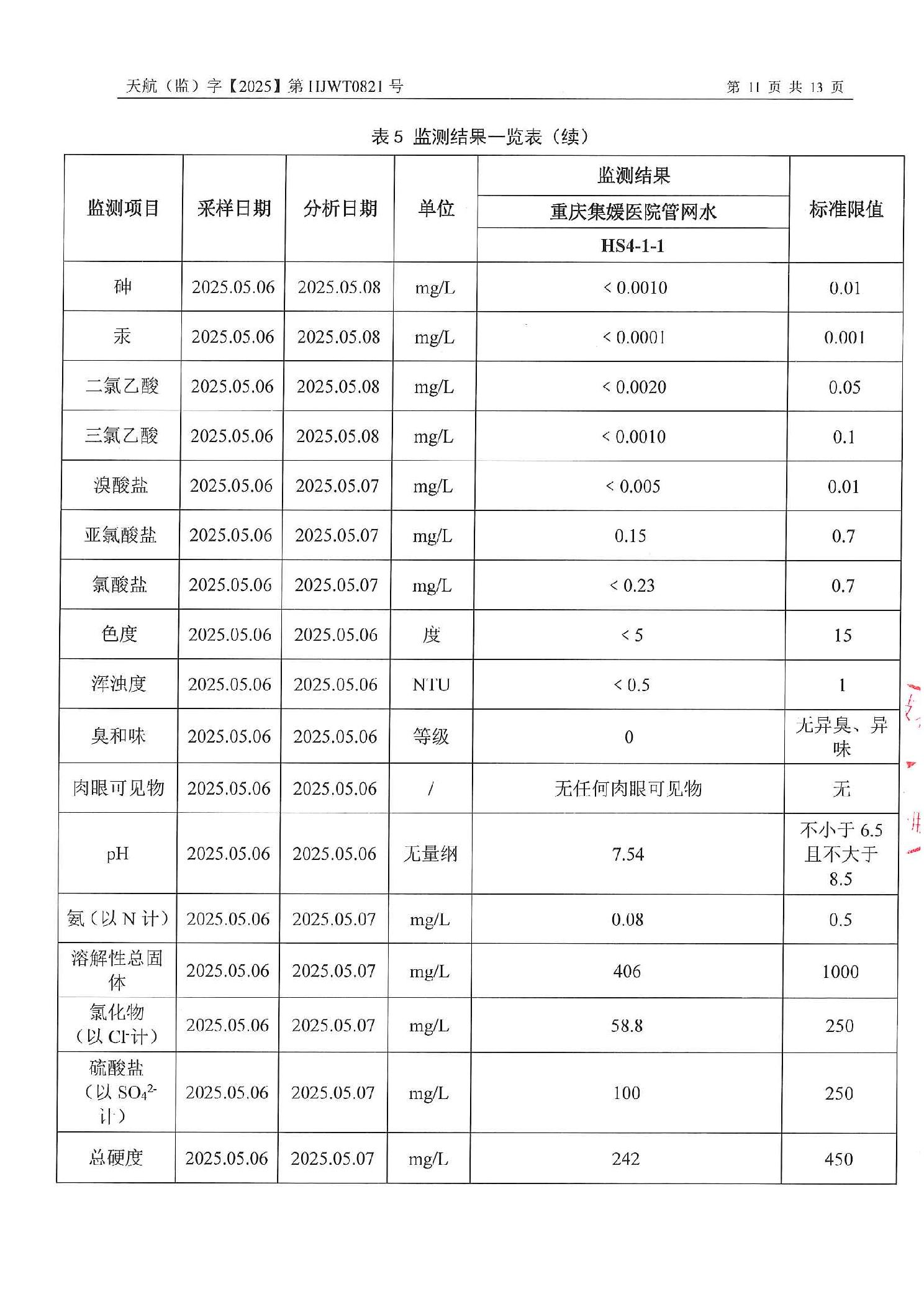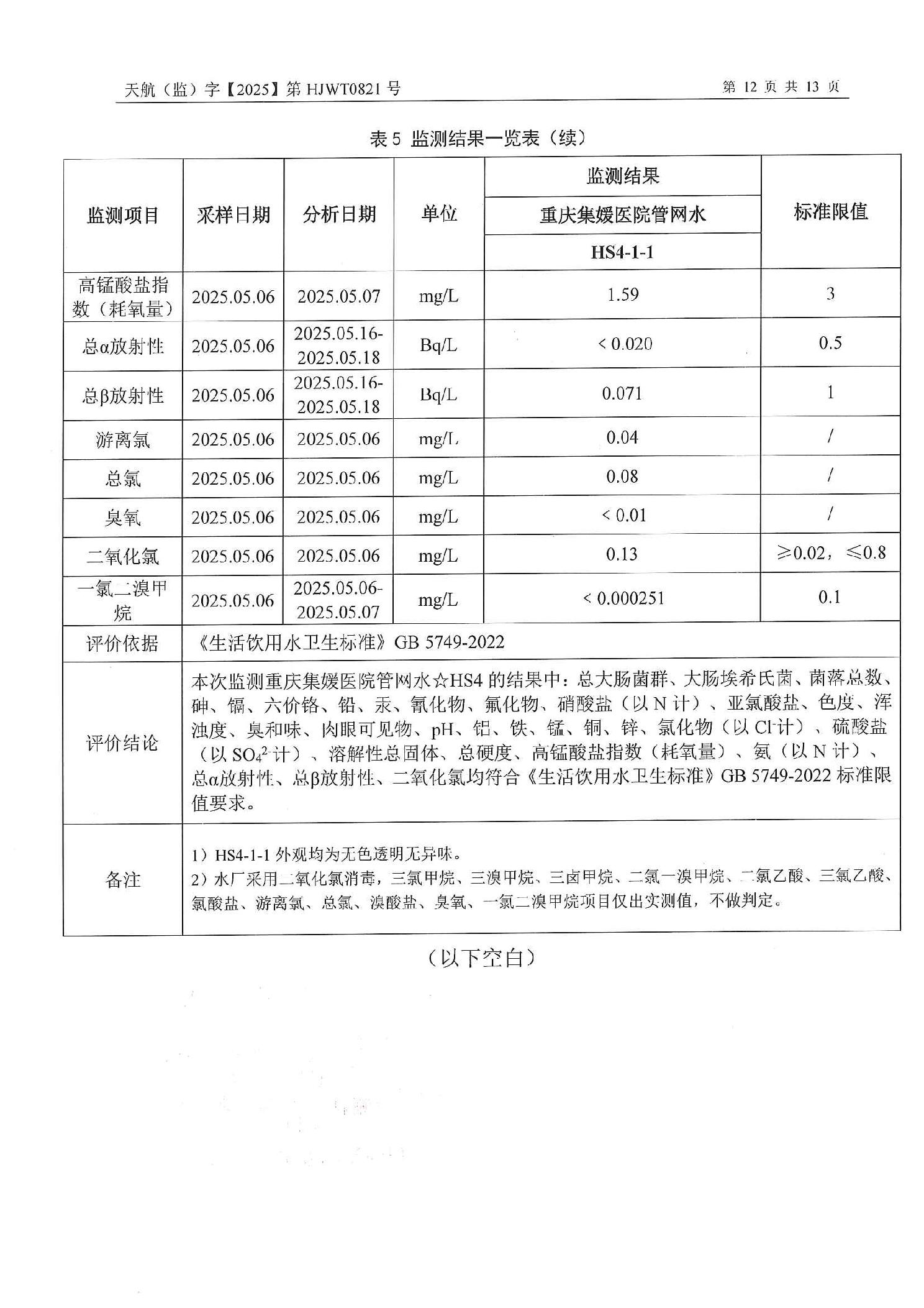 重庆市永川区城市管理局关于2025年5月永川城区水质(出厂水、管网水)检测报告的公示