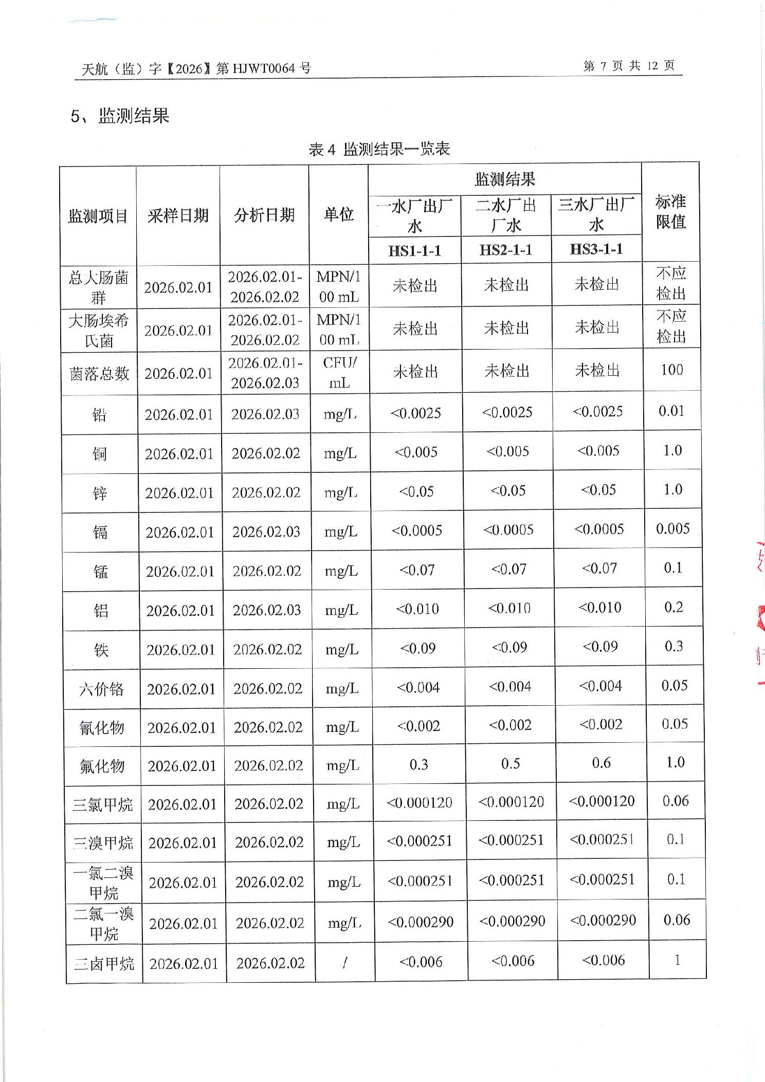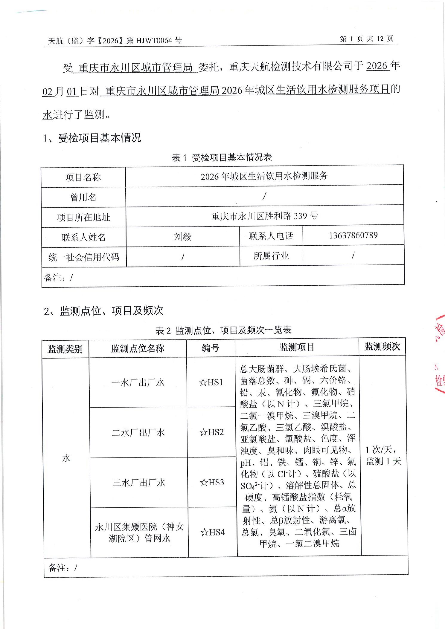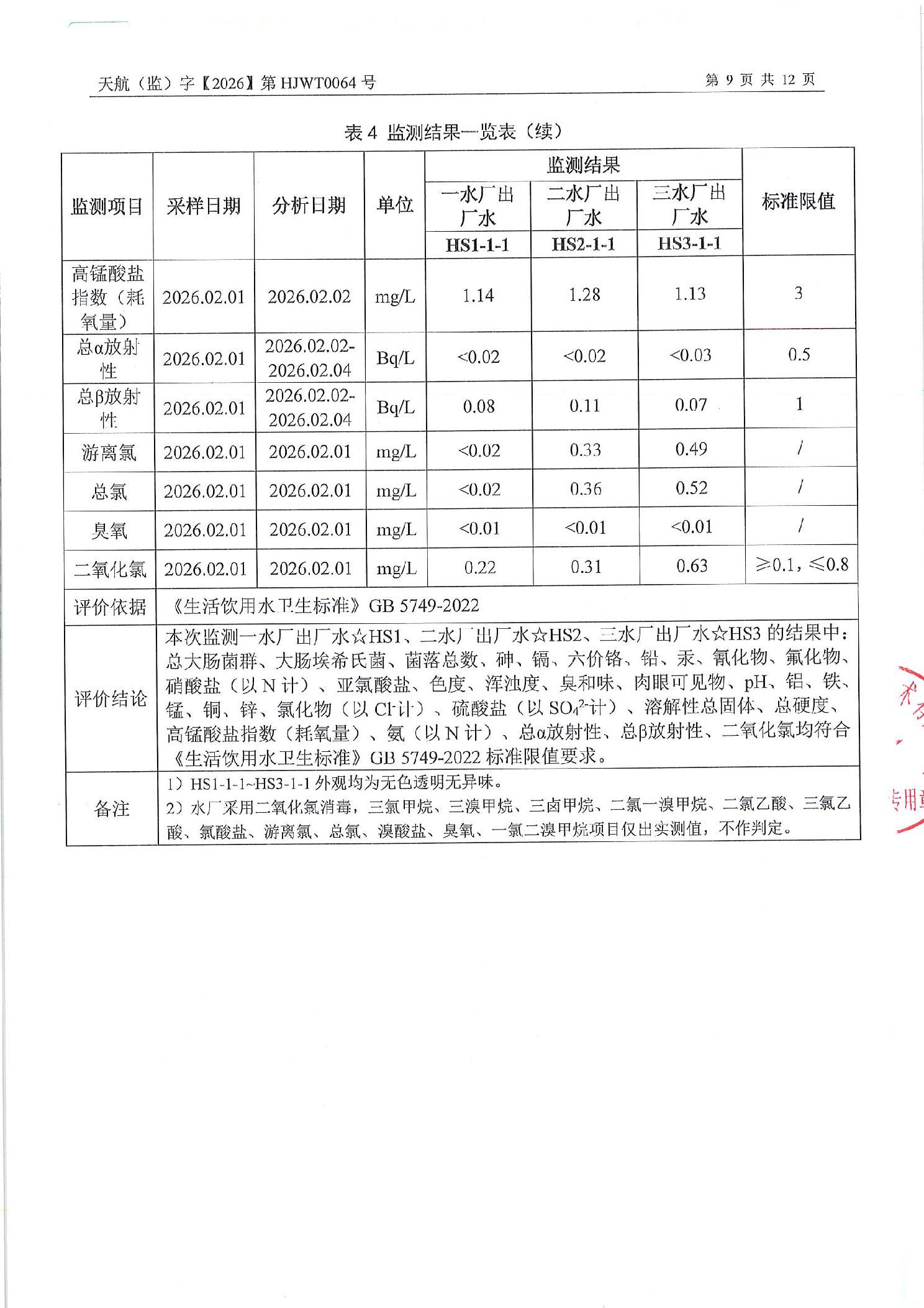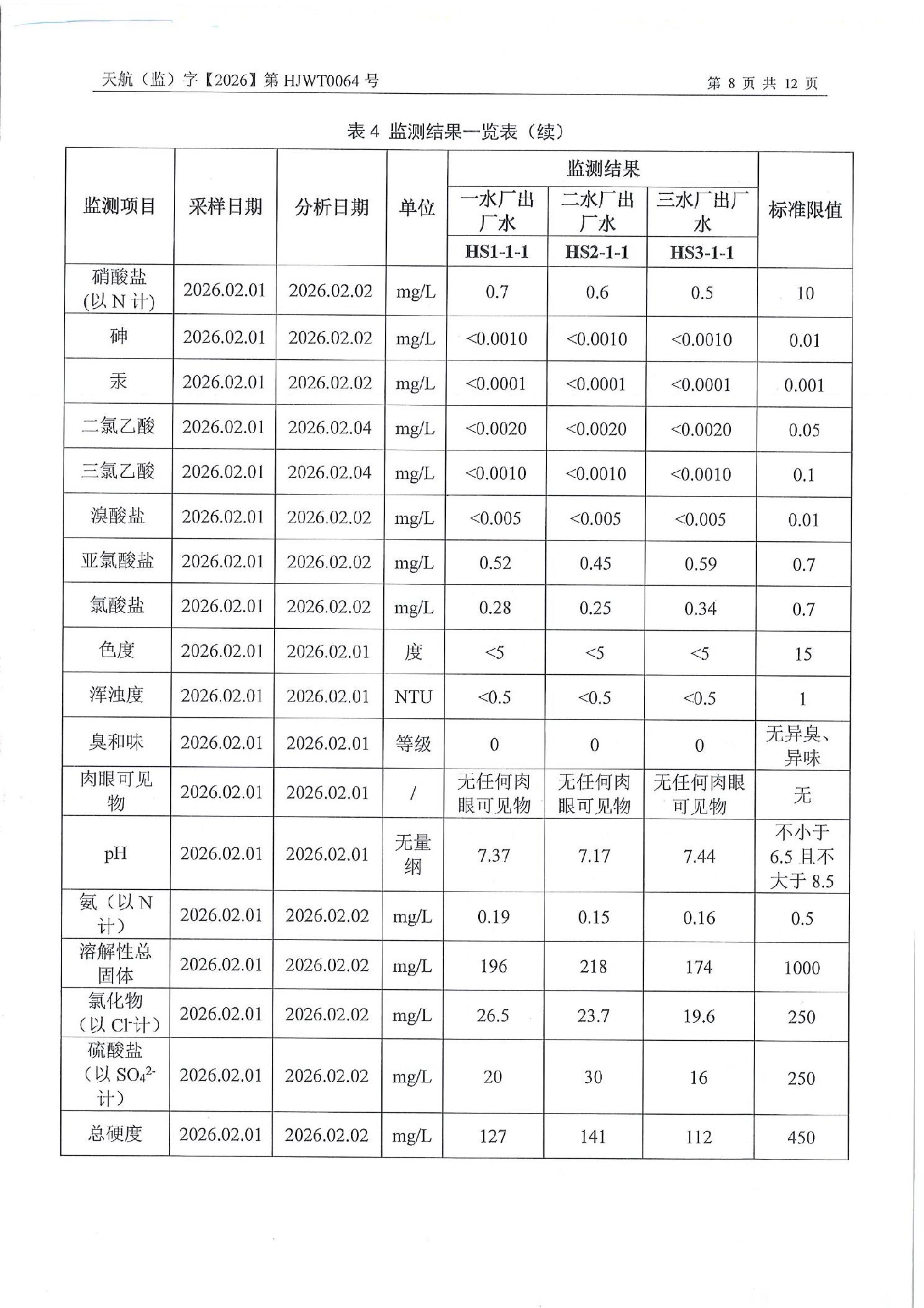重庆市永川区城市管理局关于2026年2月永川城区水质(出厂水、管网水)检测报告的公示