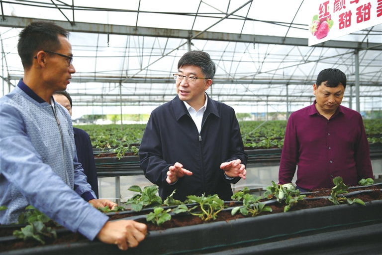 吉安镇石松村的特色水果长势喜人,让入股的12名脱贫户喜出望外;卫星湖街道南华村的泡菜供不应求,花椒销售额超6500万元,农业园还做起了电商直播。张智奎先后到两个村实地调研,详细询问了各合作社联农带农机制、农民增收等情况。他指出,要充分发挥政府有形之手、市场无形之手、群众勤劳之手作用,用好各类助农平台,建立常态化产销衔接机制,强化服务指导和精准帮扶,帮助企业及时掌握信息、拓宽渠道、扩大销量。要强化改革创新,有序推进农田宜机化改造,深化农村“三变”改革、推动“三社”融合发展,积极构建农业科技推广服务体系,促进农业增效、农民增收。针对近期可能出现的连续降雨天气,张智奎强调,要加强预报预警,强化分析研判,排查风险隐患,增添防范措施,提前做好应对洪涝、地质等灾害的准备工作,全力确保人民群众生命财产安全。