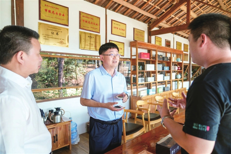 是日上午,关衷效来到云雾山茶叶基地,与玉琳茶叶有限责任公司、云酿啤酒有限公司负责人亲切交流,调研大安街道茶产业发展情况。他指出,要大力发展茶叶产业,立足“高山云雾”生态禀赋,持续精耕细作、做强优势特色,不断提升茶叶品质与市场美誉度,持续探索茶叶深加工路径,加大秀芽啤酒等茶叶衍生品研发和推广力度,更好满足消费者的多样化需求。