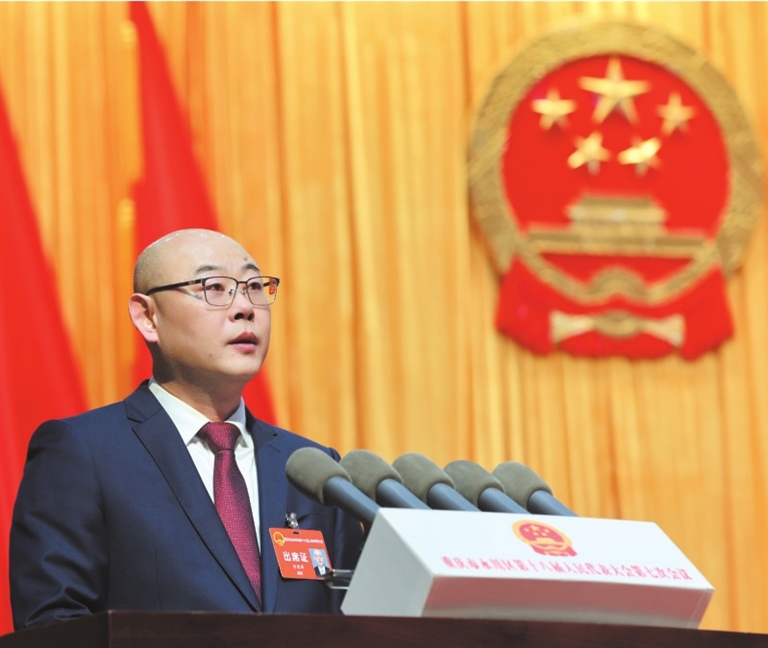 许宏球代表区人民政府向大会作政府工作报告。报告分三个部分:“十四五”时期和2025年工作回顾;“十五五”时期主要目标任务;2026年工作安排。