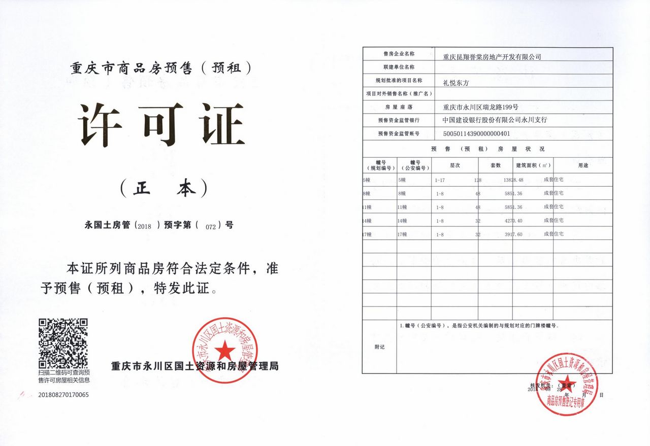 | 标题: | 预售通告-(2018)预字第(072)号(礼悦东方5、8、11、14、17幢) | ||||