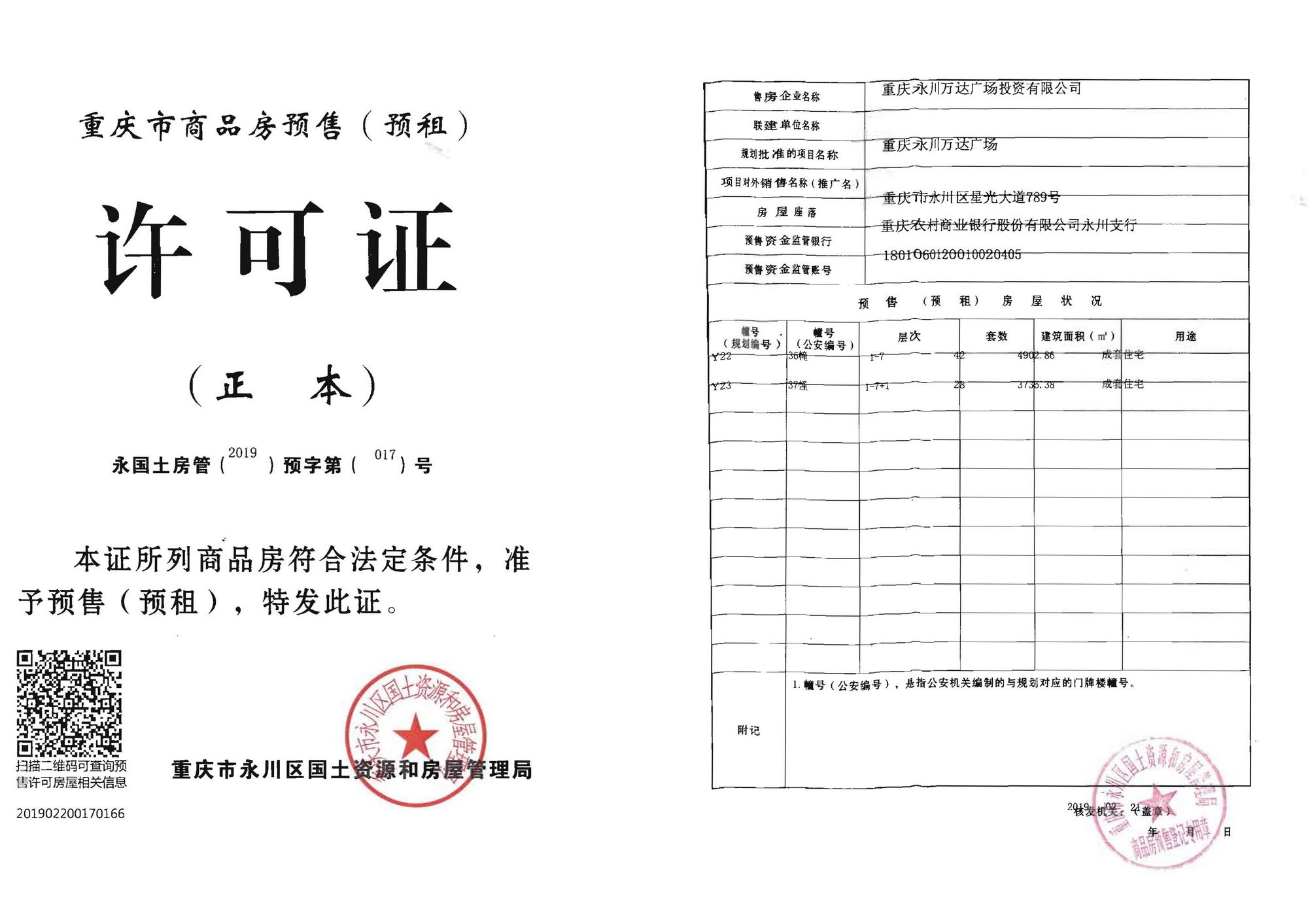 | 标题: | 预售通告-(2019)预字第(017)号(重庆永川万达广场36、37幢) | ||||