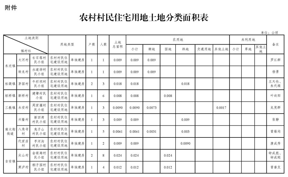 附件:农村村民住宅用地土地分类面积表
