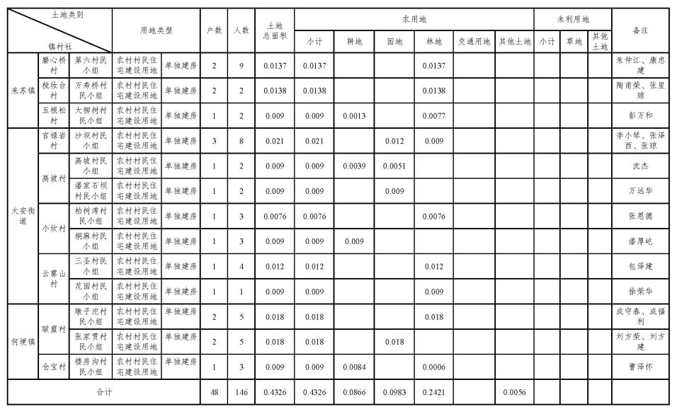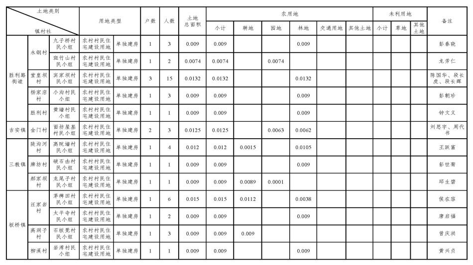 一、同意你局上报的农用地转用方案(含补充耕地方案),将五间镇友胜村皂桷湾村民小组等9个镇(街道)27个村36个村民小组集体农用地0.4326公顷(耕地0.0866公顷)转为建设用地。