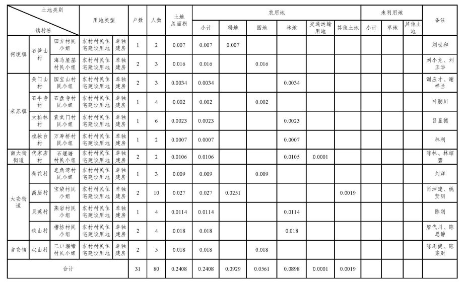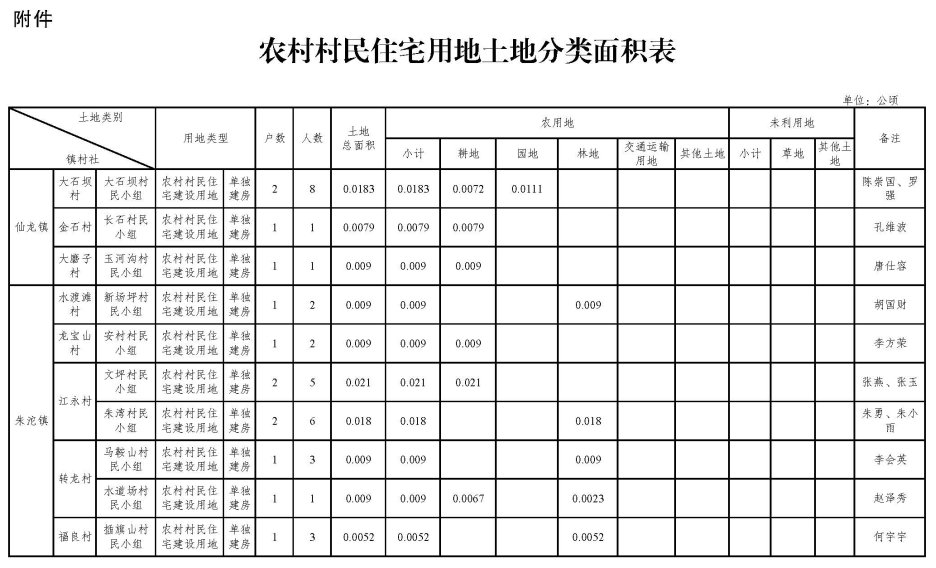 一、同意你局上报的农用地转用方案(含补充耕地方案),将仙龙镇大石坝村大石坝村民小组等7个镇(街道)19个村22个村民小组集体农用地0.2408公顷(耕地0.0929公顷)转为建设用地。