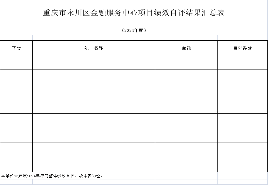 (2)公开内容。具体内容详见附件中《2024年度部门整体绩效自评表》《重庆市永川区金融服务中心项目绩效自评结果汇总表》《2024年度项目绩效自评表1》《2024年度项目绩效自评表2》《2024年度项目绩效自评表3》。
