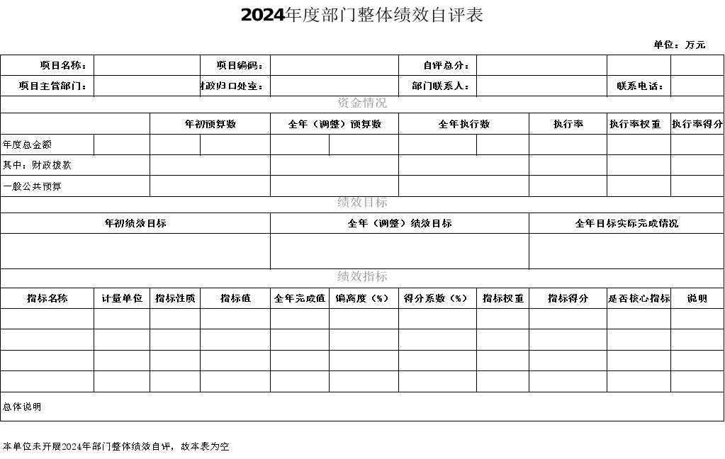 本单位未开展2024年部门整体绩效自评,故本表为空。 |