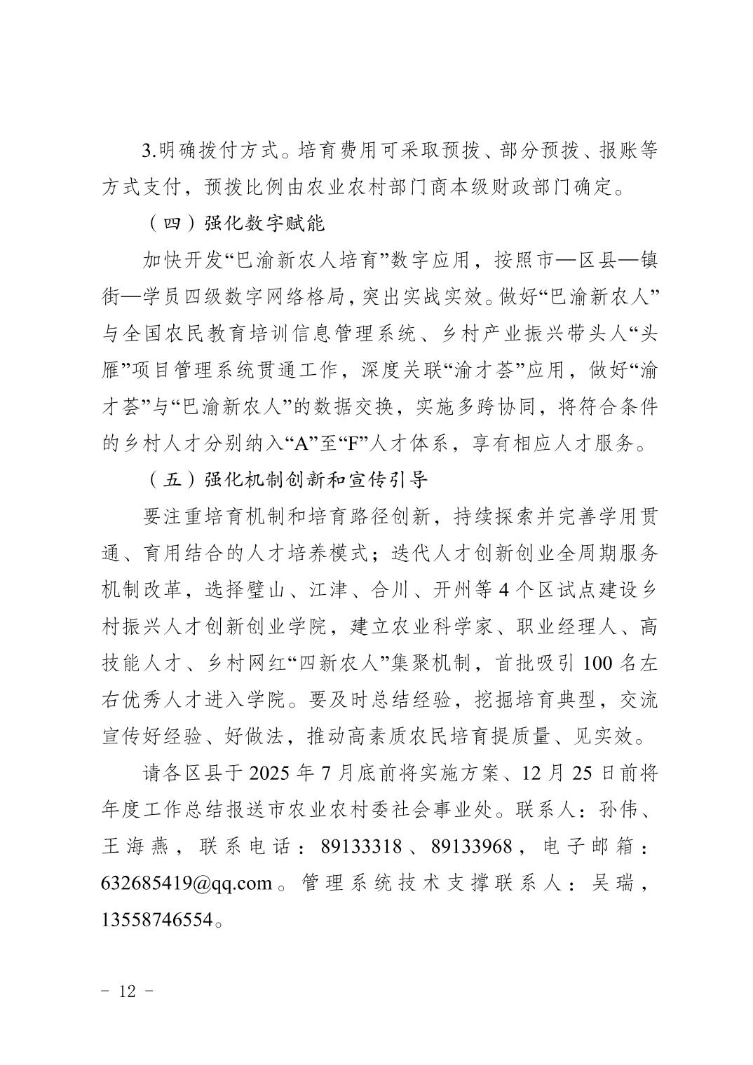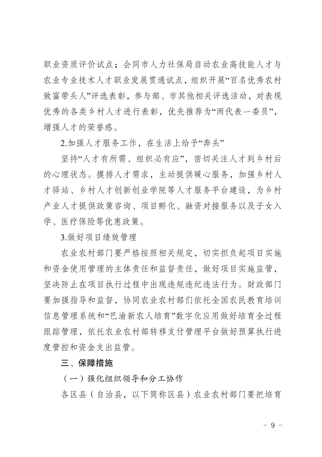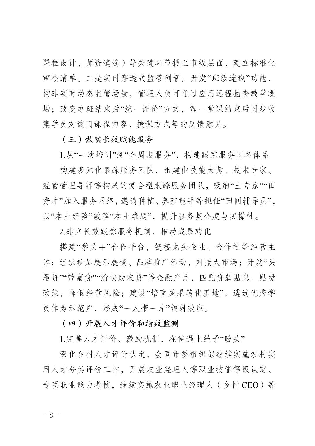 重庆市农业农村委员会 重庆市财政局 重庆市人力资源和社会保障局关于印发《重庆市高素质农民培育2025年度实施方案》的通知