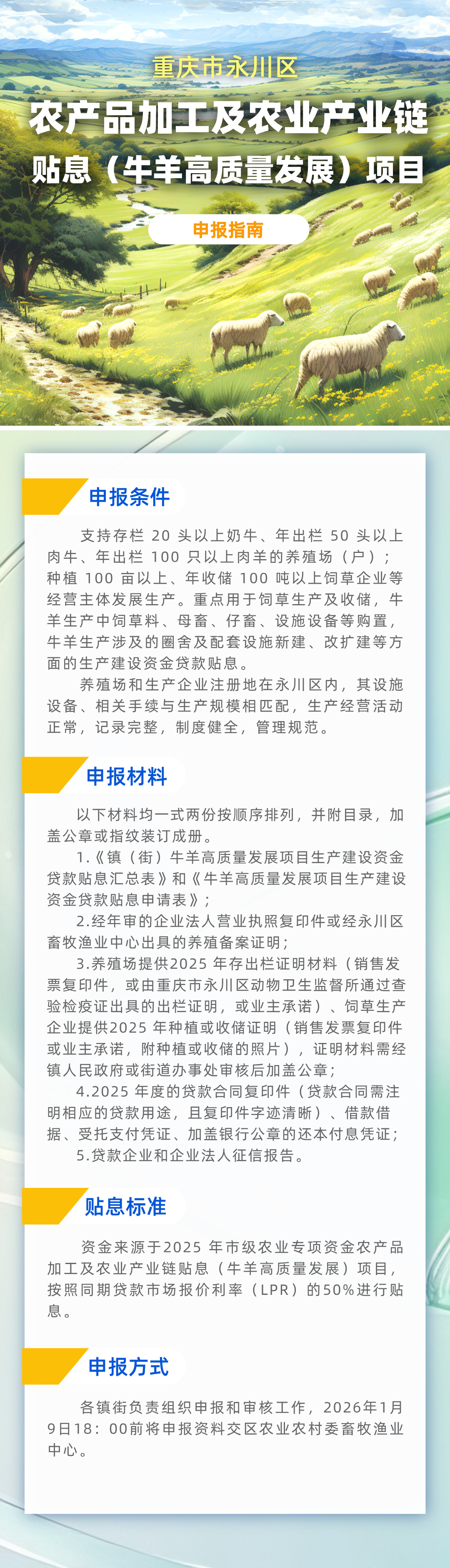 重庆市永川区农业农村委员会重庆市永川区财政局关于申报2025年农产品加工及农业产业链贴息(牛羊高质量发展)项目的通知