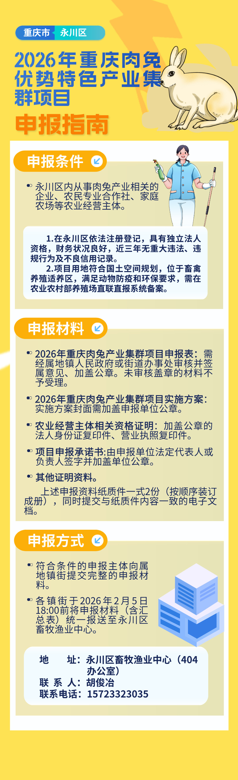 重庆市永川区农业农村委员会 重庆市永川区财政局关于组织申报永川区2026年重庆肉兔优势特色产业集群项目的通知