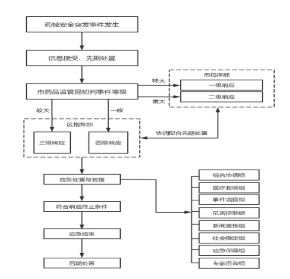 事发地镇街:配合处置药械安全突发事件;协助开展调查核实事件、现场管控、善后处置等工作。