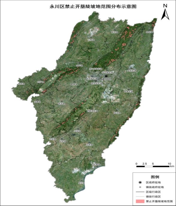 一、永川区禁止开垦陡坡地范围共涉及17个镇(街道),范围分布均在坡度为二十五度以上的林地内,划定图斑共计156个,总面积16.56km²,占全区幅员面积的1.05%(详见附件1、附件2),其中位于生态保护红线内7.49km²。